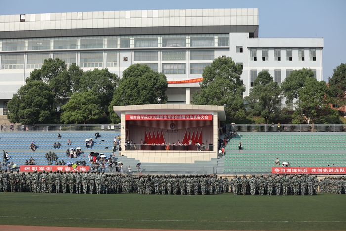 军姿凛凛震雄风,抖擞精神湖商人。9月24日上午,我校2016级新生军训会操暨总结表彰大会分别在学校南、北校区体育场隆重举行。党委书记唐亚阳,校长陈晓红,副校长曾伏秋、黎定军以及承担我校军训工作的国防科技大学指挥军官基础教育学院领导,美国弗罗斯特堡州立大学副校长鲍曼、商学院院长苏德尔出席大会。大会由副校长曾伏秋主持。