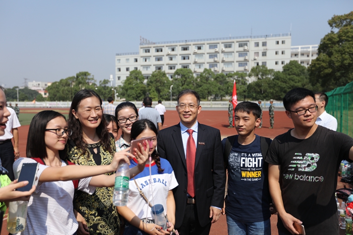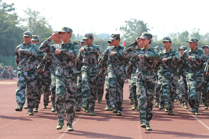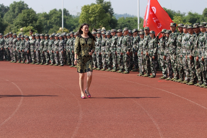 在经历了严格的军训之后,同学们早已蓄势待发,一个个精神饱满,目光坚定而自信。阅兵式上,校长陈晓红在部队领导及学生处负责人的陪同下检阅了英姿飒爽的参训方队。