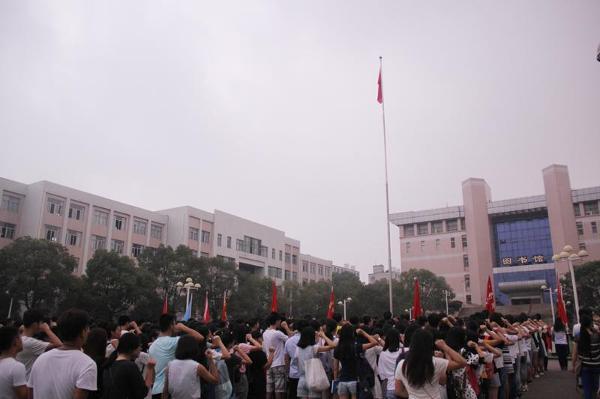 为隆重纪念中国人民抗日战争暨世界反法西斯战争胜利70周年,激发广大师生爱国、爱校热情,引导全体师生共同铭记历史,缅怀先烈,珍爱和平,开创未来,同时也为实现我校“三升三旺”战略齐心协力、努力奋进,学校于9月7日举行了新学期“开学第一课”大型升旗仪式。副校长彭进清,学工处、校团委全体同志,各学院党总支副书记、学办主任、分团委书记和各学院学生代表参加了升旗仪式。